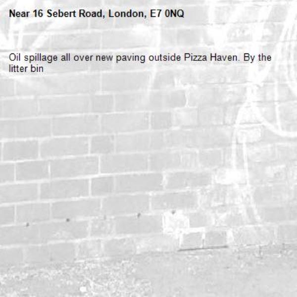 Oil spillage all over new paving outside Pizza Haven. By the litter bin