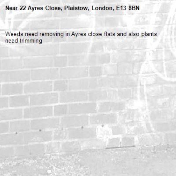 Weeds need removing in Ayres close flats and also plants need trimming