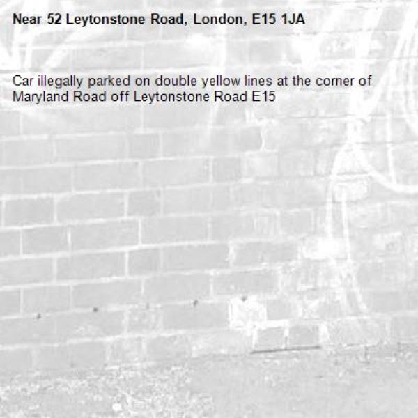 Car illegally parked on double yellow lines at the corner of Maryland Road off Leytonstone Road E15