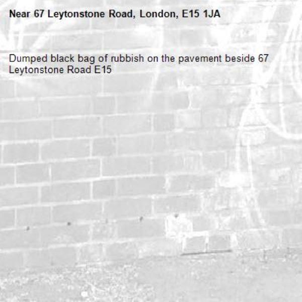 Dumped black bag of rubbish on the pavement beside 67 Leytonstone Road E15