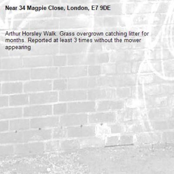 Arthur Horsley Walk. Grass overgrown catching litter for months. Reported at least 3 times without the mower appearing