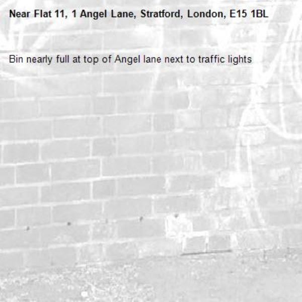 Bin nearly full at top of Angel lane next to traffic lights