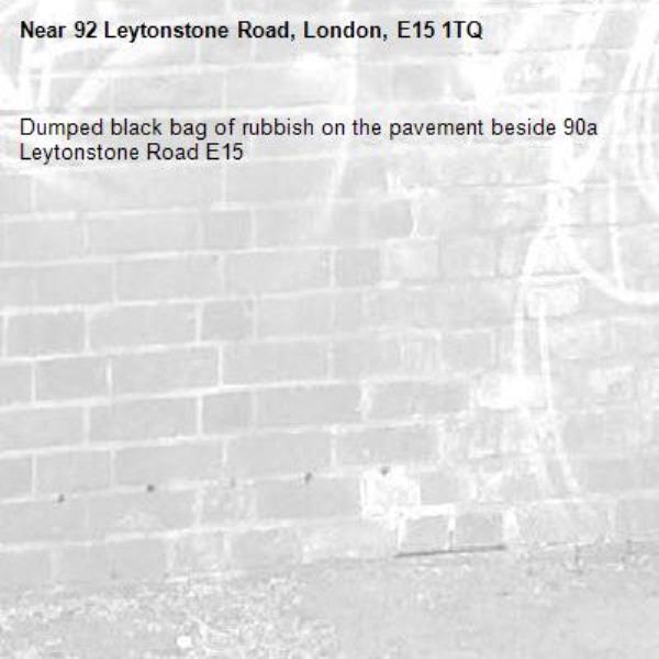Dumped black bag of rubbish on the pavement beside 90a Leytonstone Road E15
